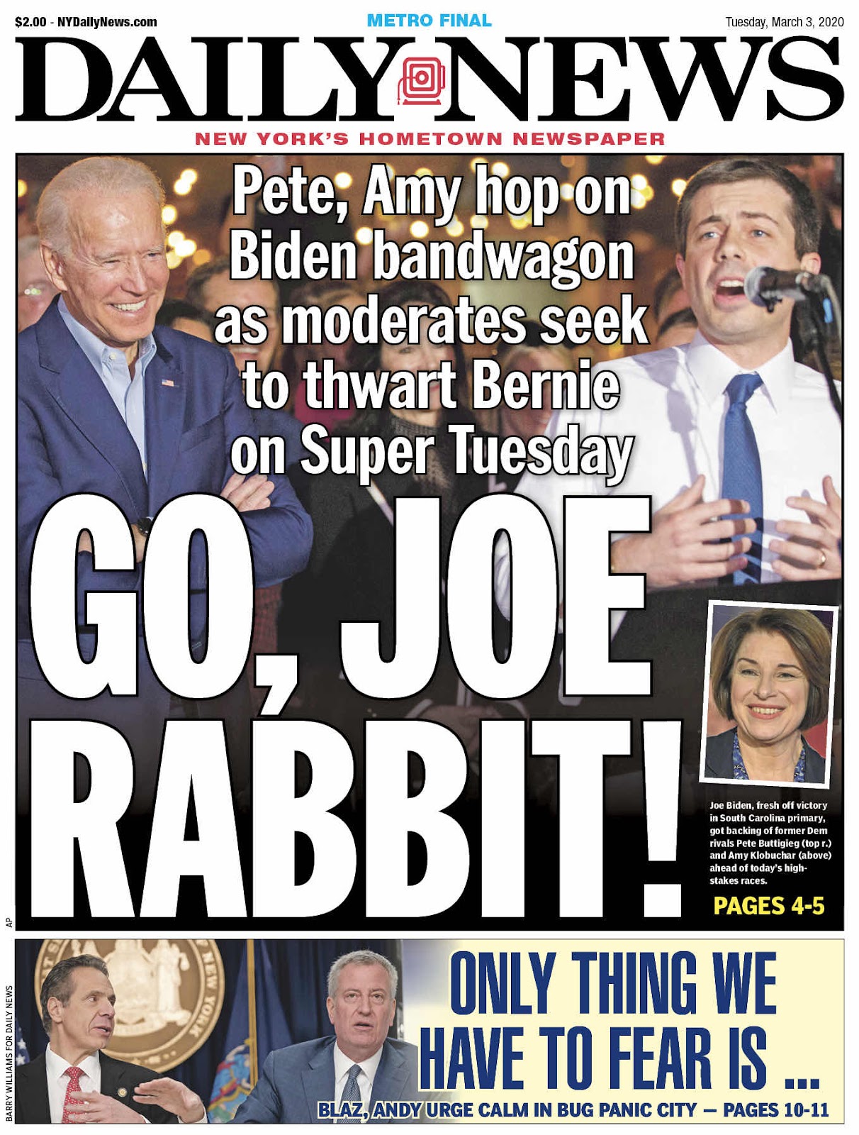 The New York Times: Buttigieg and Klobuchar endorse Biden, aiming to slow Sanders
